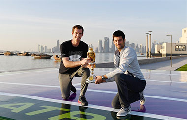 Andy Murray, left and Novak?Djokovic, RIGHT?promote?the?Qatar Open?in Doha, January 1, 2017. [Photo/IC] |