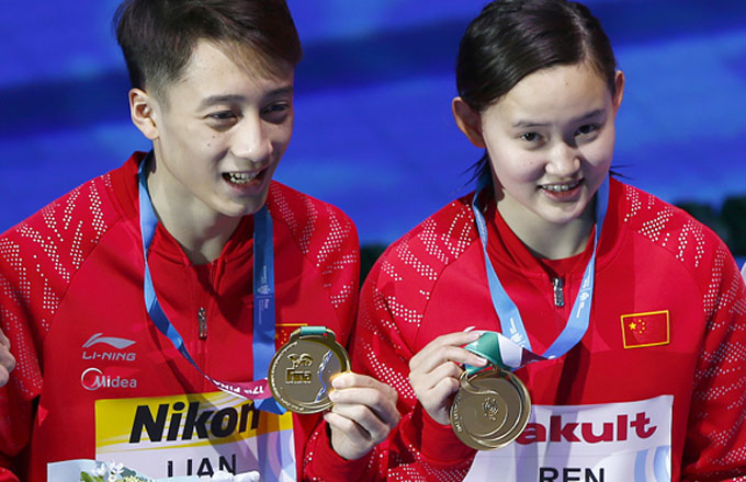 Chinese divers Ren Qian, Lian Junjie win gold at worlds