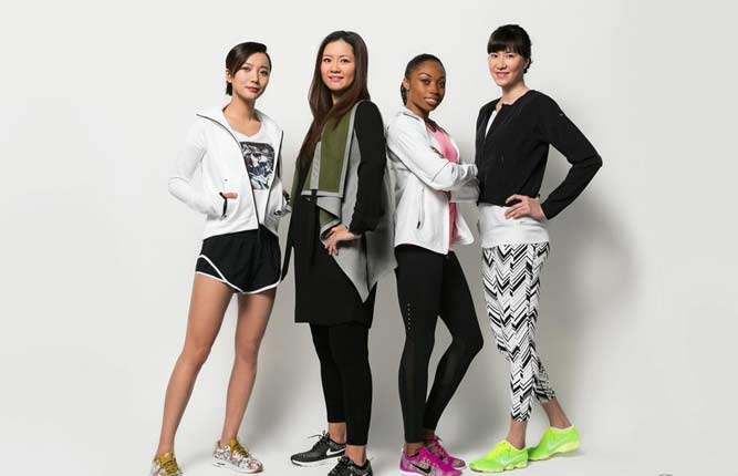 Dual tennis Grand Slam winner Li Na joins American sprinter Allyson Felix, Chinese actress Wang Luodan, and Chinese beach volleyball star Zhang Xi at a sports brand promotion in Shanghai, March 8.