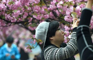 Tourists view cherry flowers in E China's Hefei