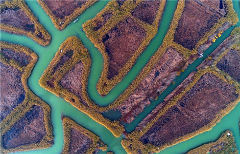 Aerial view of wetland of Danjiang River in Henan