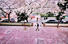 Cherry blossoms turn secluded path into attraction site