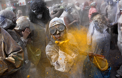 Flour power lifts spirits as Greek village stages mock battle