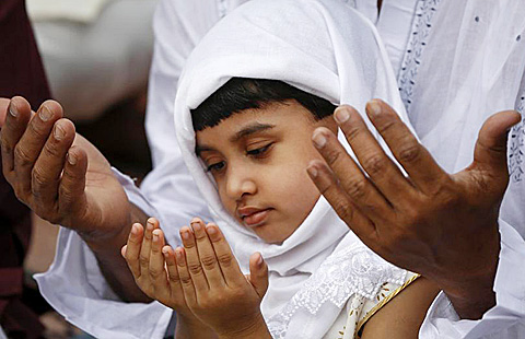 Palestinian children celebrate Eid al-Fitr in refuge camp